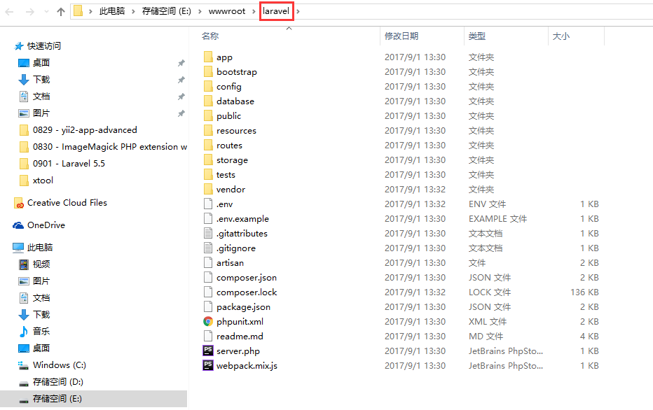 在 Windows 10 64、PHP 7.0.22 下安装 Laravel 5.5 的流程