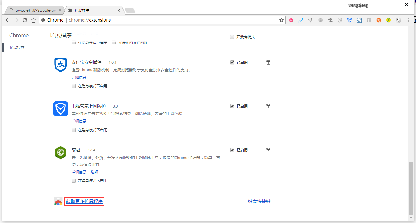 2、打开 Chrome 扩展程序,获取更多扩展程序,如图2