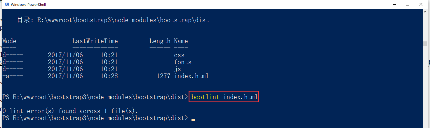 4、安装 Bootlint,其是 Bootstrap 官方所支持的 HTML 检测工具,如图4