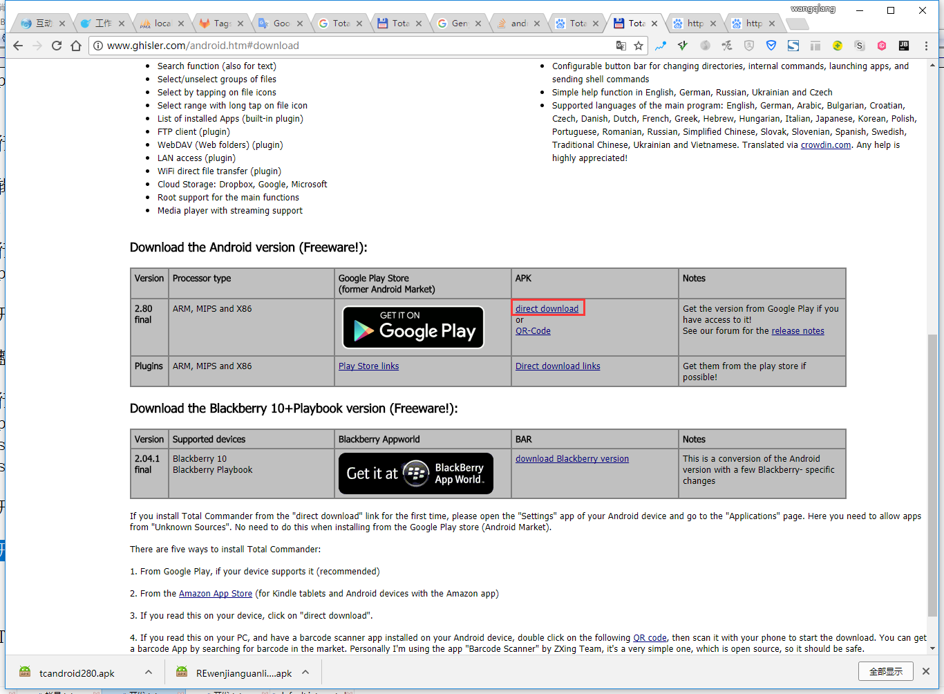 18、打开网址:http://www.ghisler.com/android.htm#download ,下载 Total Commander,如图18