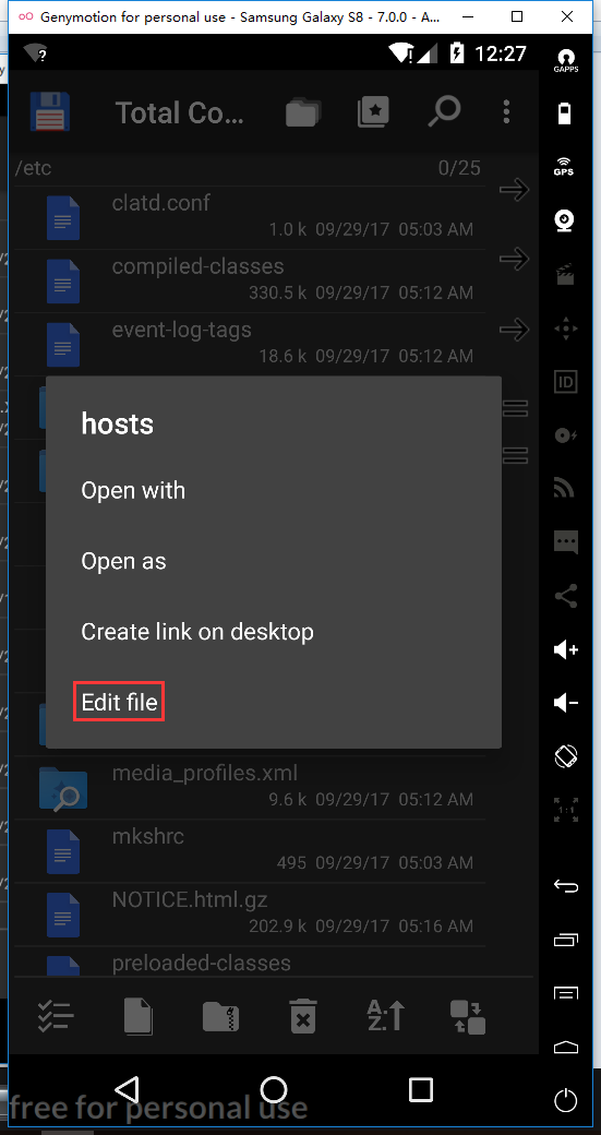 23、新建一个虚拟设备,Samsung Galaxy S7 – 6.0.0,基于 Total Commander 编辑 hosts 成功,如图30
