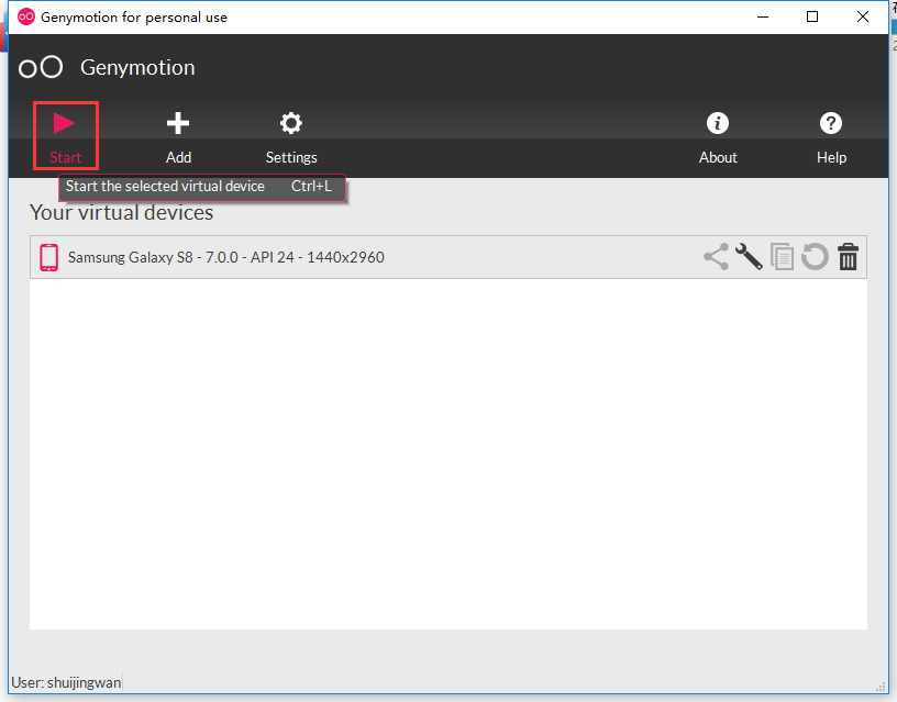 3、新建完毕,点击 Start 按钮,启动设备,如图3