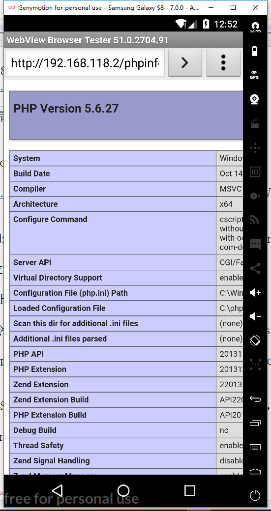 在 Windows 10 64、Oracle VM VirtualBox 5.2.2 下安装运行 Genymotion 2.11.0,以测试本地H5页面