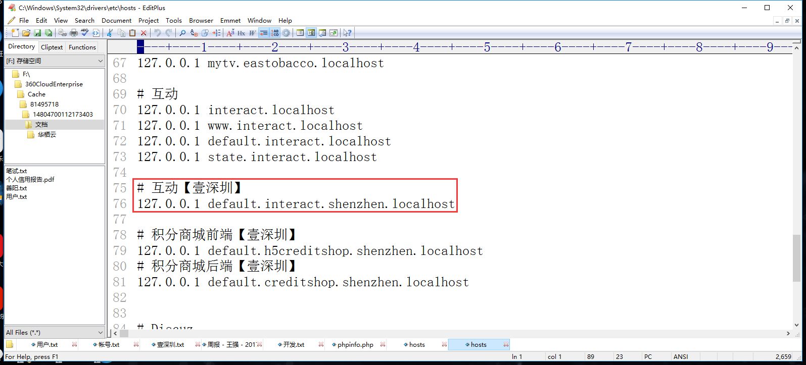 9、使用域名(default.interact.shenzhen.localhost)连接到本地 摇一摇 网站,编辑hosts,类似于本地的hosts,如图9