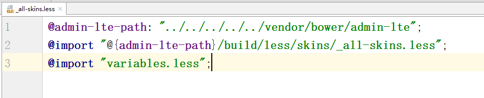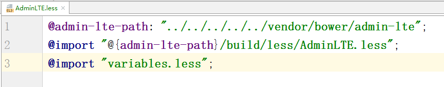 4、复制:\vendor\bower\admin-lte\build\less\variables.less 至:\backend\web\themes\default\css\variables.less,清空其中的所有内容