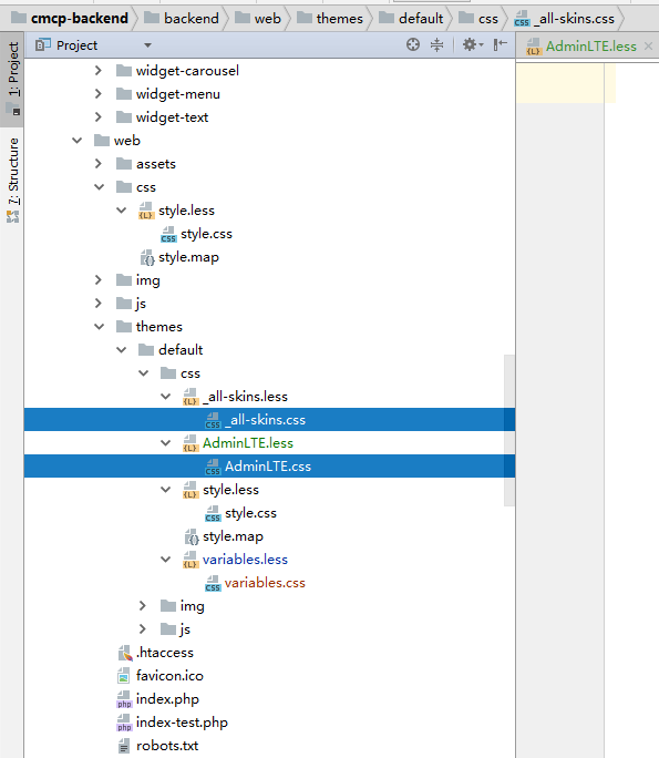 6、新建:\backend\web\themes\default\css\AdminLTE.less,如图4