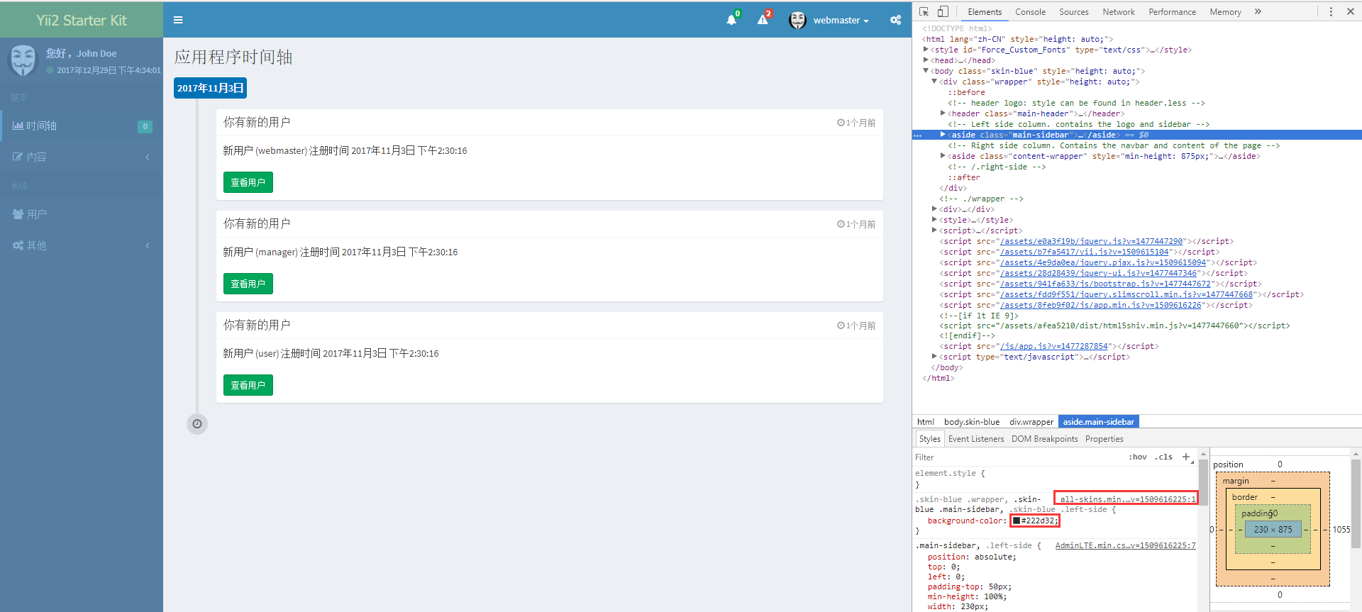 在 Yii2 Starter Kit 的后台应用中,基于一套主题,调整其样式,以与设计一致