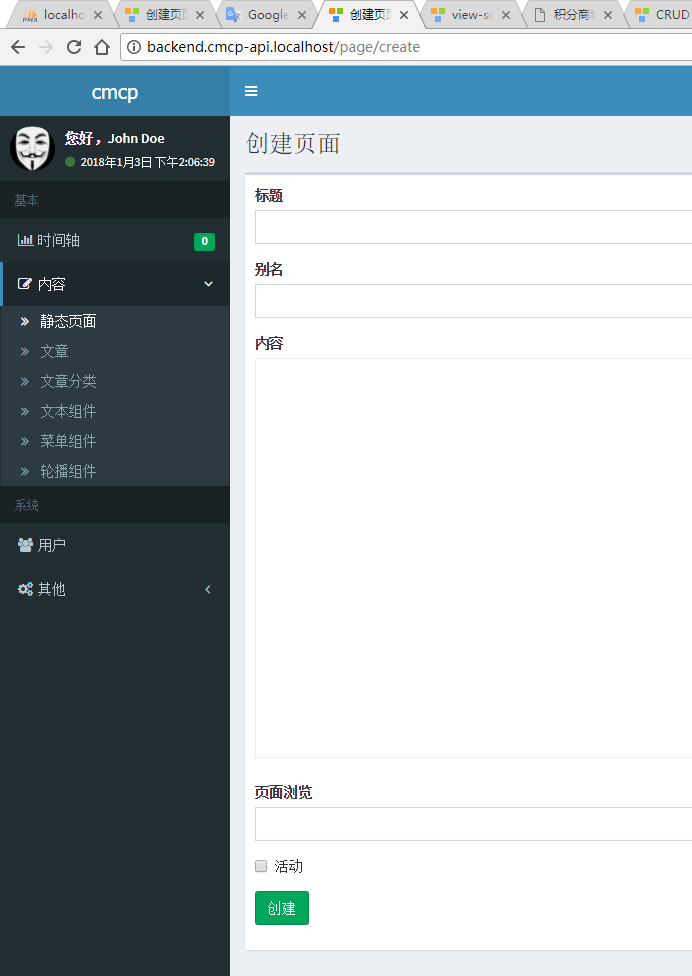 "message": "创建页面成功",