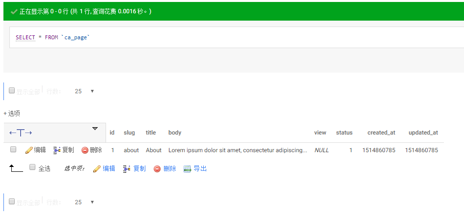 20、基于数据库表 ca_page 建立相应模型,如图20