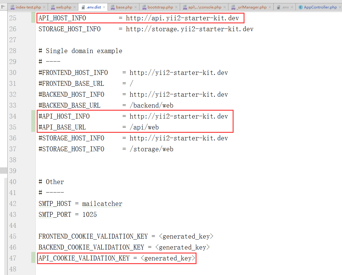 3、编辑 \.env.dist,新增 api 相关的配置,此为提交至Git版本控制的配置文件,如图3
