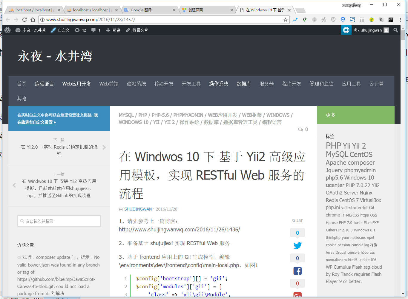 在 Windwos 10、PHP 7.1.12 下 基于 Yii 2 Starter Kit,复制后台应用为接口应用,实现 RESTful Web 服务的流程