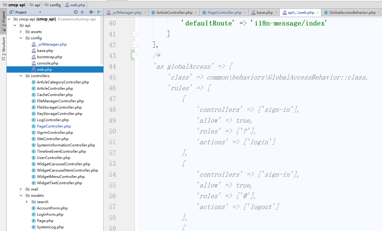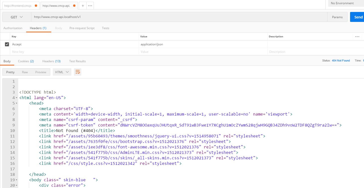 16、打开 http://www.cmcp-api.localhost, 如果出现样式文件加载响应404的情况,可以删除 \api\web\assets 下的所有子目录,如图16
