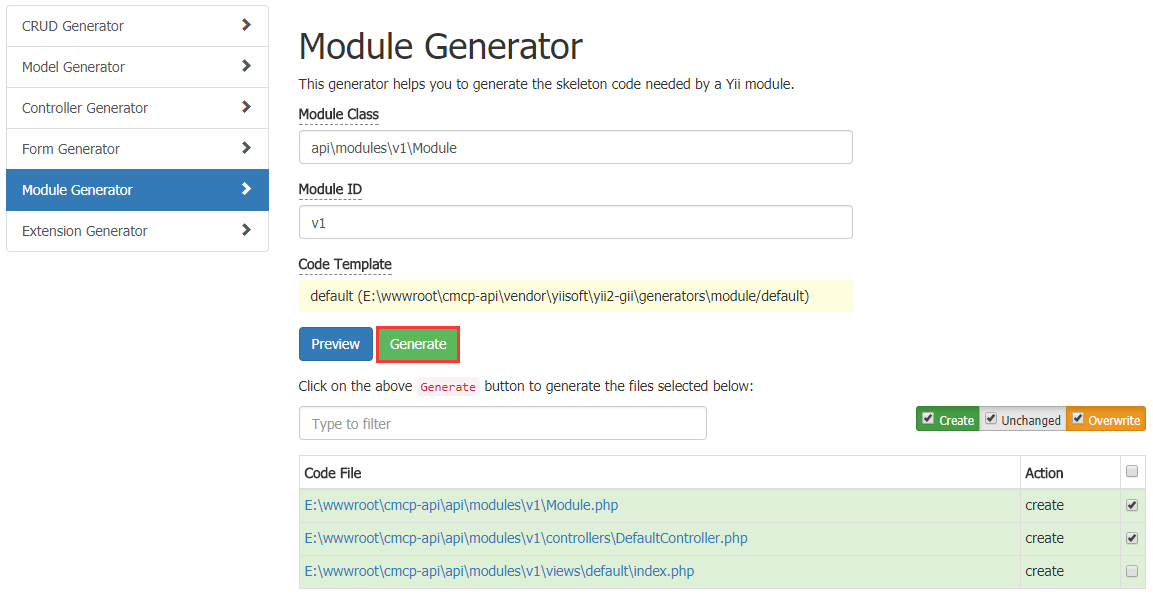 19、打开网址:http://frontend.cmcp-api.localhost/gii ,如图19
