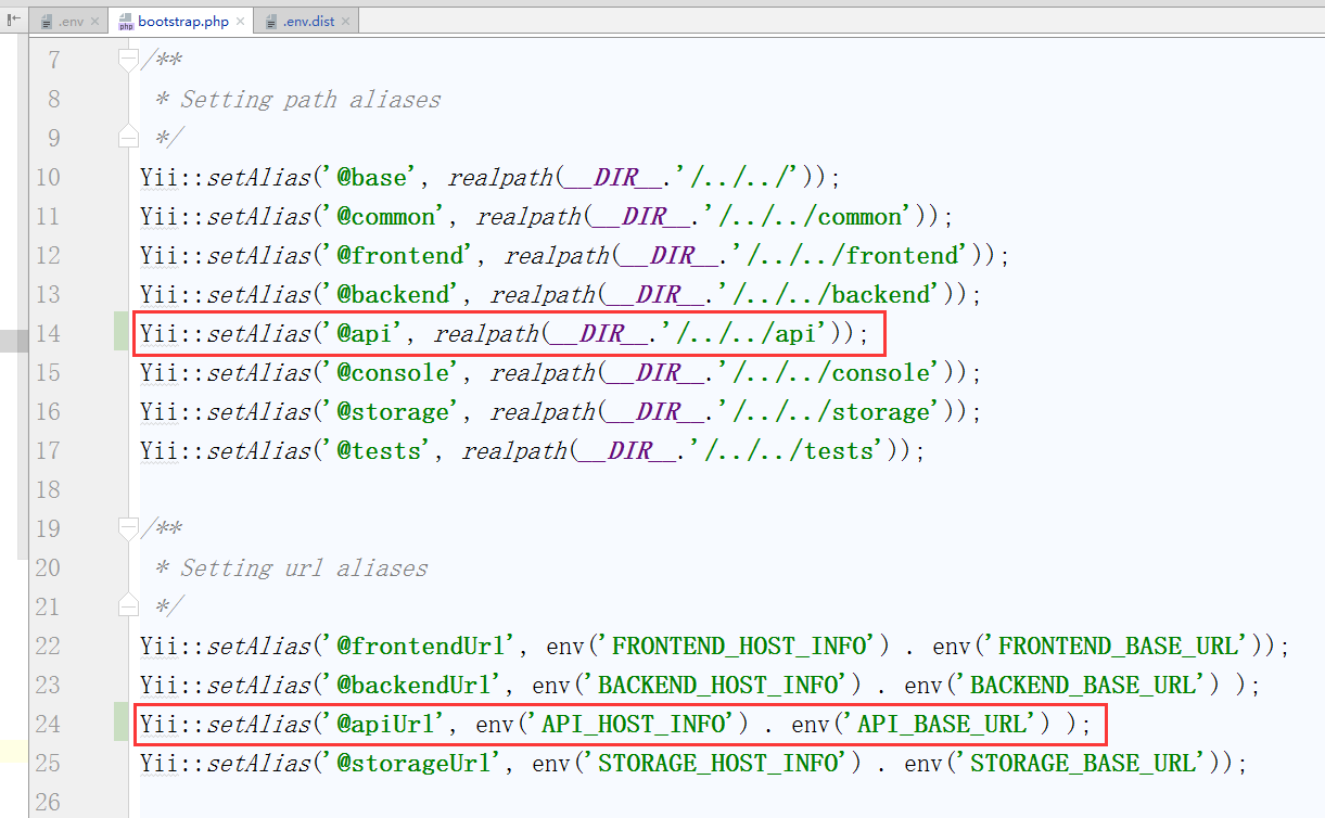 5、编辑 \common\config\bootstrap.php,配置接口应用的别名,如图5