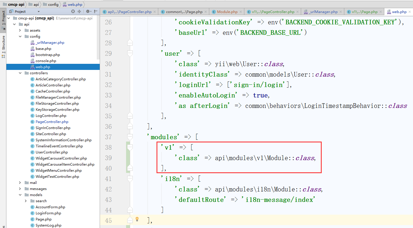 ![要在应用中使用模块,只需要将模块加入到应用主体配置的[[yii\base\Application::modules|modules]]属性的列表中, 如下代码的应用主体配置 使用 v1 模块,编辑 \api\config\web.php](http://www.shuijingwanwq.com/wp-content/uploads/2018/01/50.png)