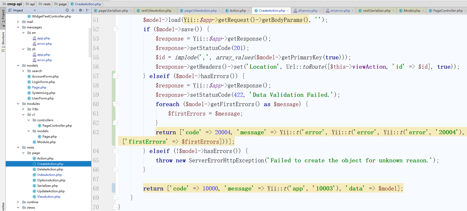 return ['code' => 10000, 'message' => Yii::t('app', '10003'), 'data' => $model];