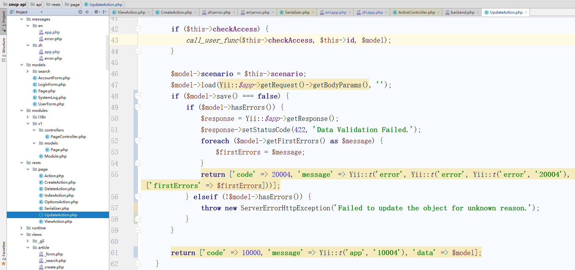 89、PUT /pages/4: 更新一个页面,编辑 \api\rests\page\UpdateAction.php,如图89