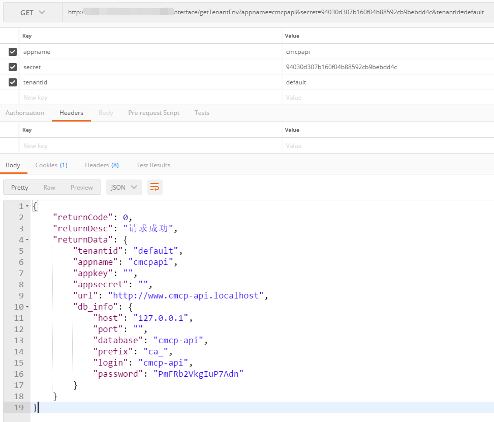 7、现在需要调用多租户系统的接口,以其响应重新赋值 $tenantConfig(建议:此方案仅适用于存在一个租户的情况,如果存在多个租户,建议每个租户对应不同的连接组件,连接组件的命名基于租户ID,而不是对应 db 连接组件),如图5