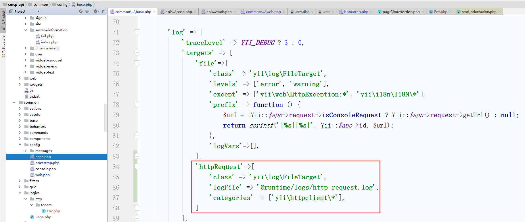 14、日志组件必须在引导期间就被加载,因此如果数据库连接是动态配置的,已经晚于引导阶段了,编辑日志组件配置,\common\config\base.php,保存日志消息到文件中