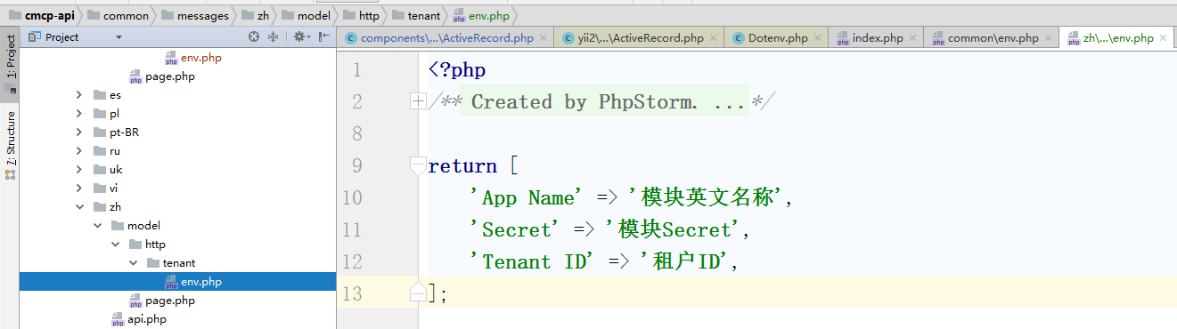 33、新建语言包文件,\common\messages\en\model\http\tenant\env.php、\common\messages\zh\model\http\tenant\env.php,如图20