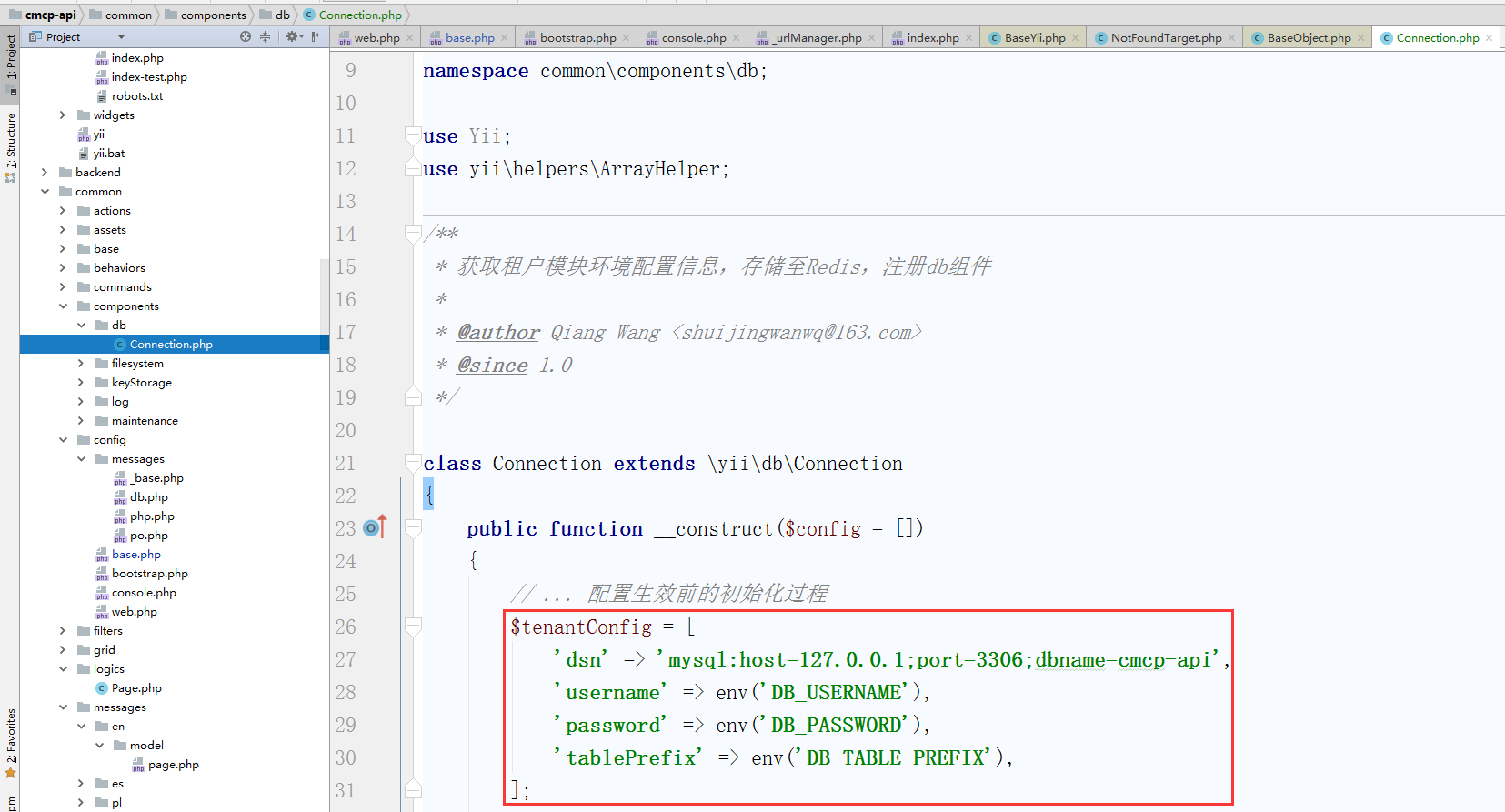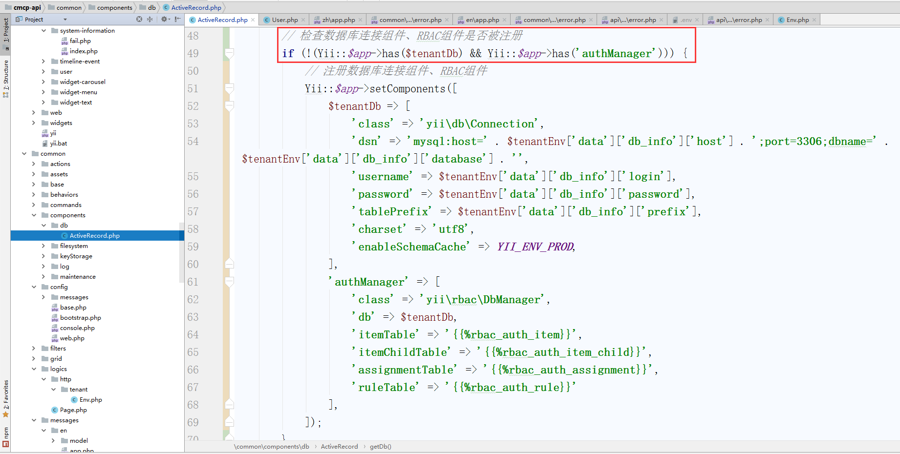 36、编辑 \common\components\db\ActiveRecord.php,数据库配置信息源自于租户环境配置接口