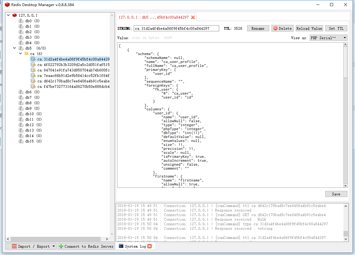 48、运行后台应用后,查看 Redis 中的数据,数据表的结构已经被缓存了,如图30