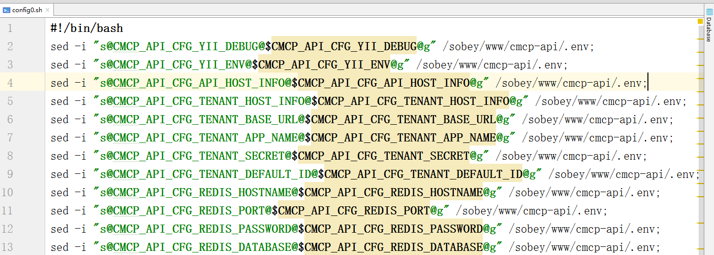 sed -i “s@CMCP_API_CFG_YII_DEBUG@$CMCP_API_CFG_YII_DEBUG@g” /sobey/www/cmcp-api/.env;