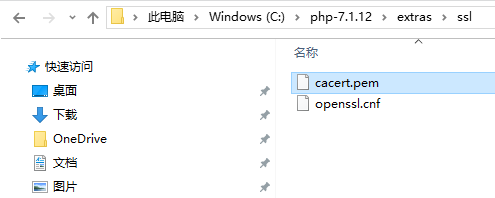 5、打开网址:https://curl.haxx.se/docs/caextract.html ,在这里下载并提取cacert.pem(一个干净的文件格式/数据),复制至:C:\php-7.1.12\extras\ssl\cacert.pem,如图5