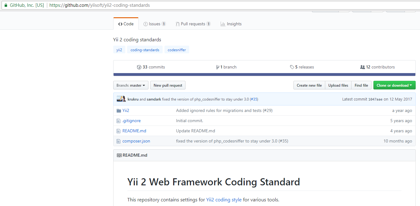 1、参考网址:https://github.com/yiisoft/yii2-coding-standards ,如图1
