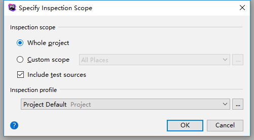 14、在批处理模式下运行代码嗅探器,Code | Inspect code → Inspection scope: Whole project,如图14