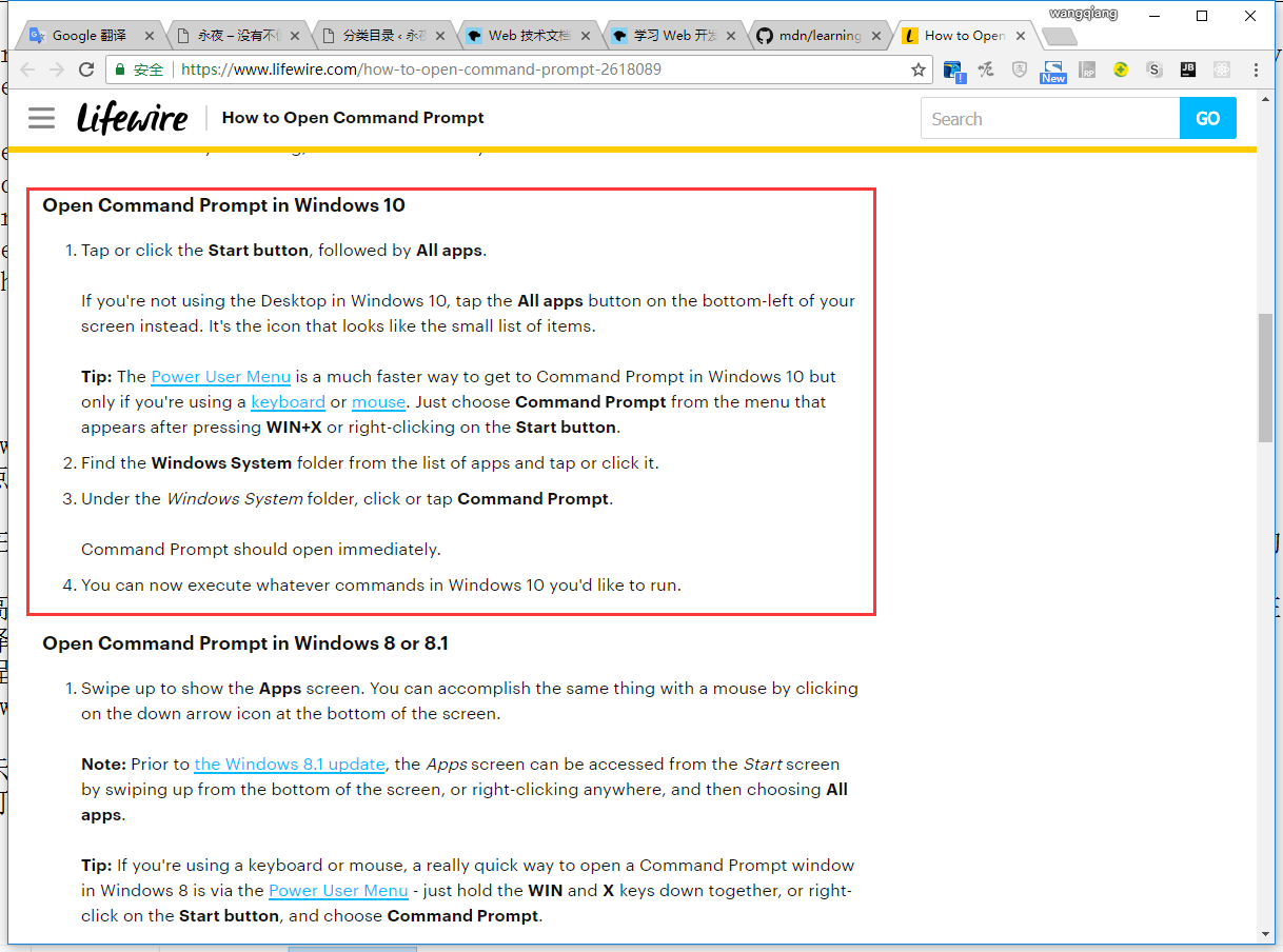 2、参考第4步骤,打开电脑中的 命令提示符(Windows),参考网址:https://www.lifewire.com/how-to-open-command-prompt-2618089 ,如图2