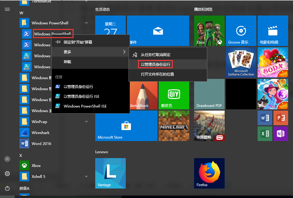 5、从应用程序列表中找到Windows PowerShell文件夹,推荐使用 Windows PowerShell,功能更丰富,如图5