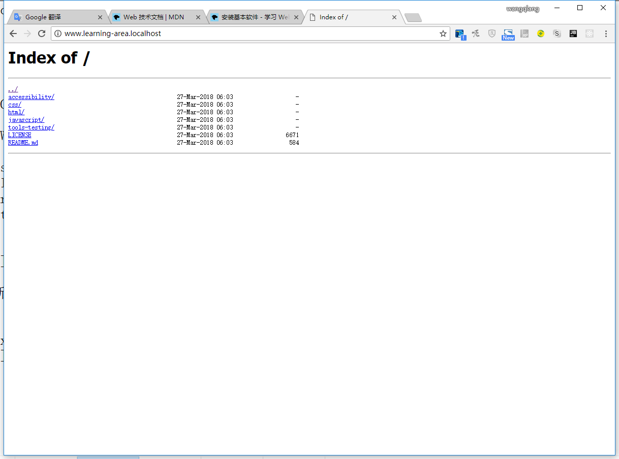 10、打开网址:http://www.learning-area.localhost/ ,在这里你会看到列出的目录的内容,如图8