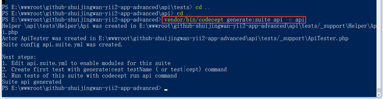 基于 yiisoft/yii2-app-advanced,在 GitHub 上新建仓库 yii2-app-advanced,新建接口应用(实现 RESTful 风格的 Web Service 服务的 API),在 api 的 tests 目录中准备用户相关操作的一些自动化测试的样例(API 测试),确保应用程序在改变或增加新的功能时不会影响现有的功能 (四)