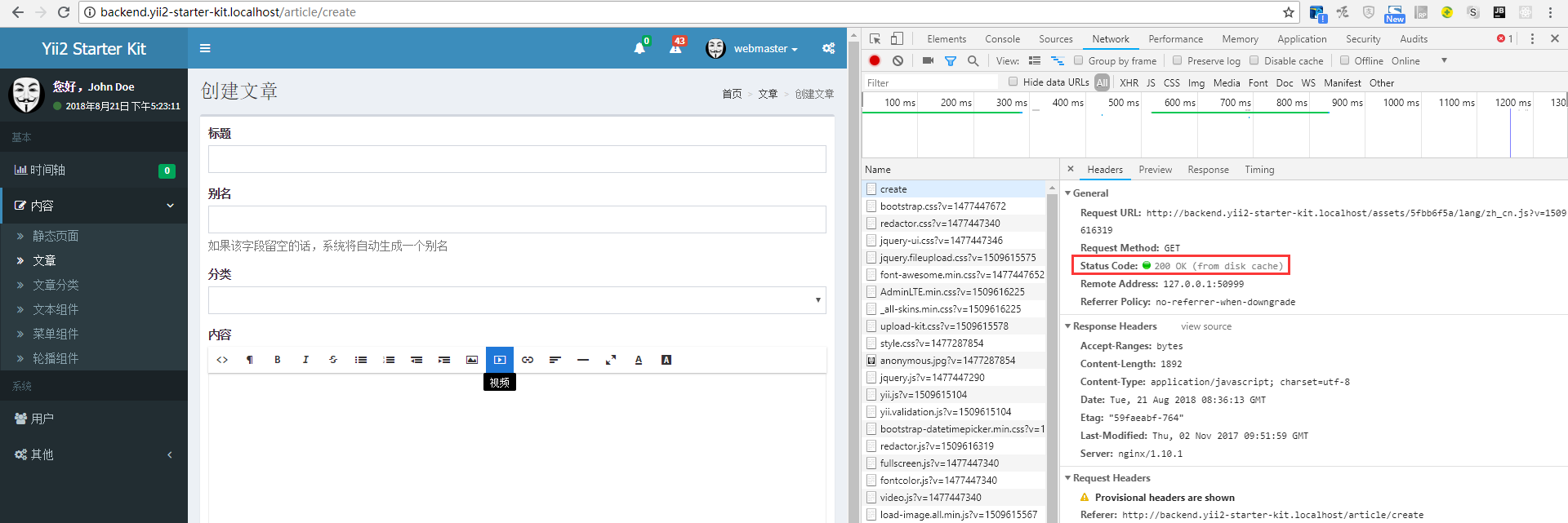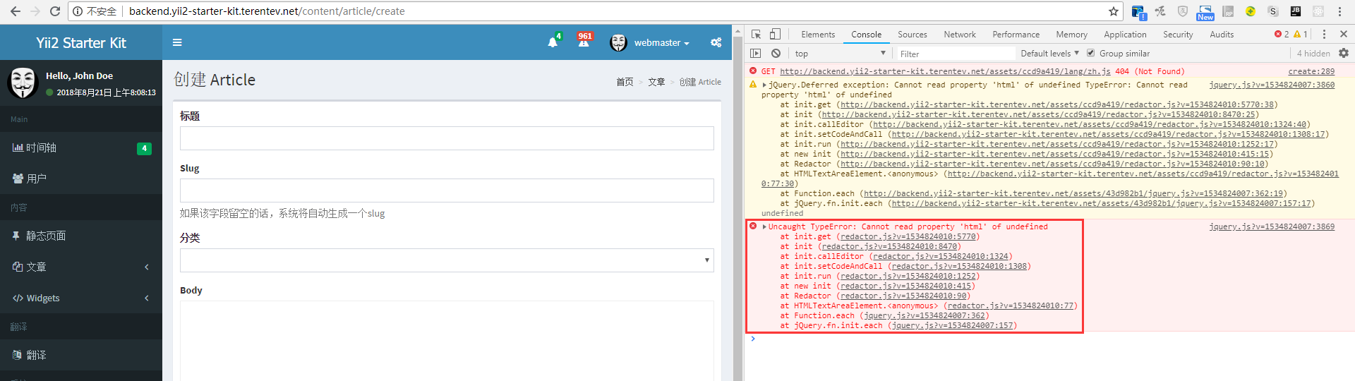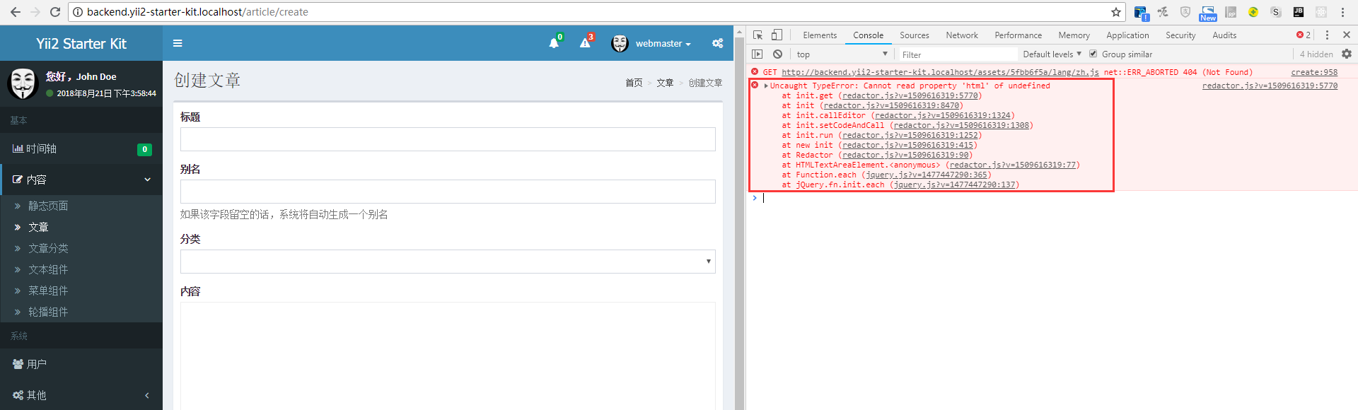 Yii2 Starter Kit 切换至中文语言环境后,编辑器未正常显示的解决