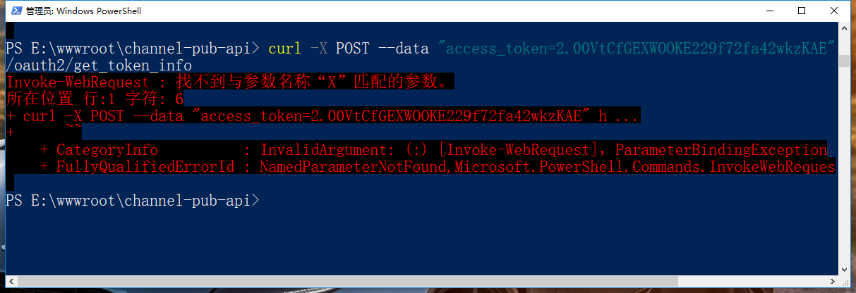 PS E:\wwwroot\channel-pub-api> curl -X POST --data "access_token=2.00VtCfGEXWOOKE229f72fa42wkzKAE" https://api.weibo.com