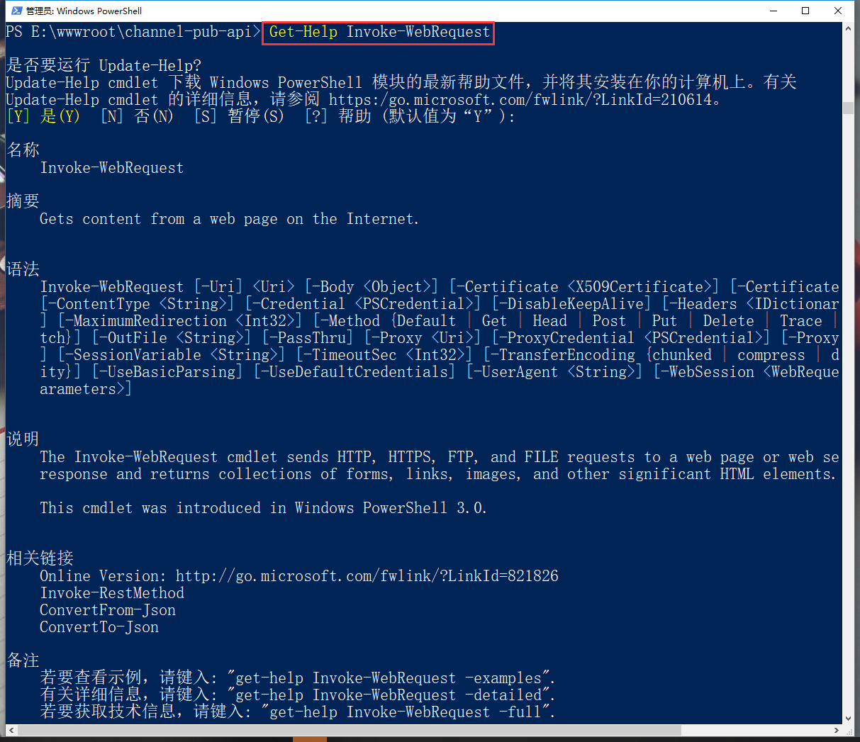PS E:\wwwroot\channel-pub-api> Get-Help Invoke-WebRequest