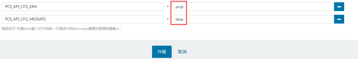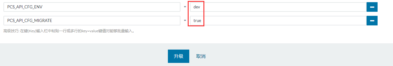 PCS_API_CFG_ENV=dev # 环境,dev:开发环境 / 测试环境;prod:演示环境 / 生产环境,默认:dev PCS_API_CFG_MIGRATE=false # 数据库迁移是否执行(单机部署时,需设置为 true;集群部署时,仅需一台机器设置为 true,其他机器需设置为 false),true:是;false:否,默认:false