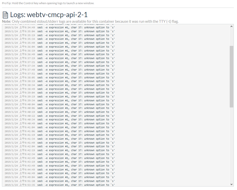1、在 Rancher 容器升级时,执行 SHELL 脚本报错:sed: -e expression #1, char 37: unknown option to `s’,如图1