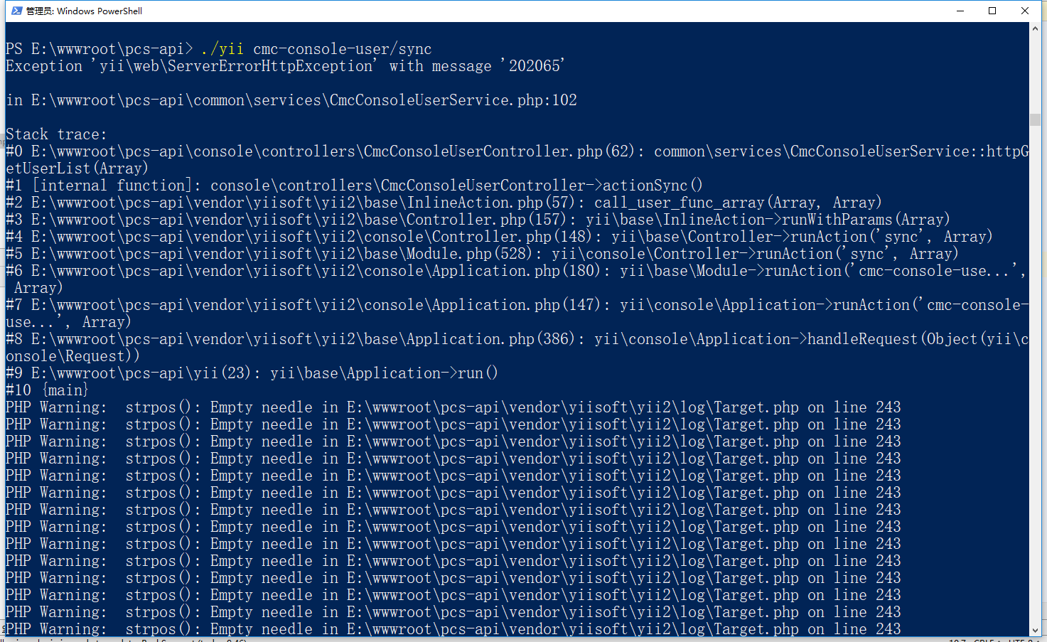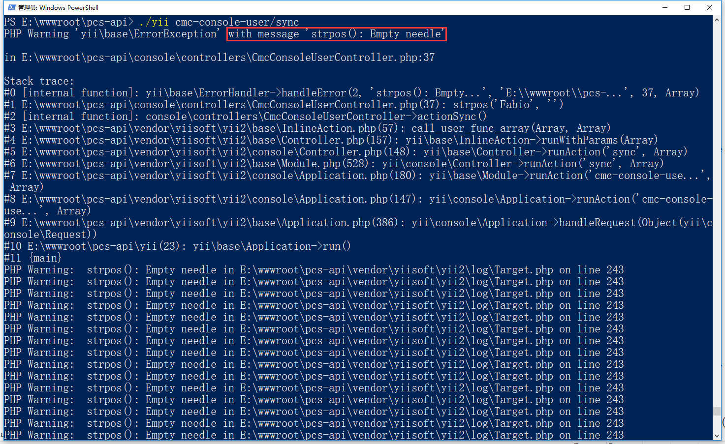 在 Yii 2.0 报错:PHP Warning: strpos(): Empty needle in E:\wwwroot\pcs-api\vendor\yiisoft\yii2\log\Target.php on line 243 的分析解决