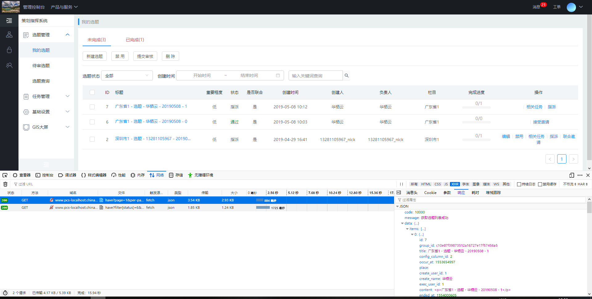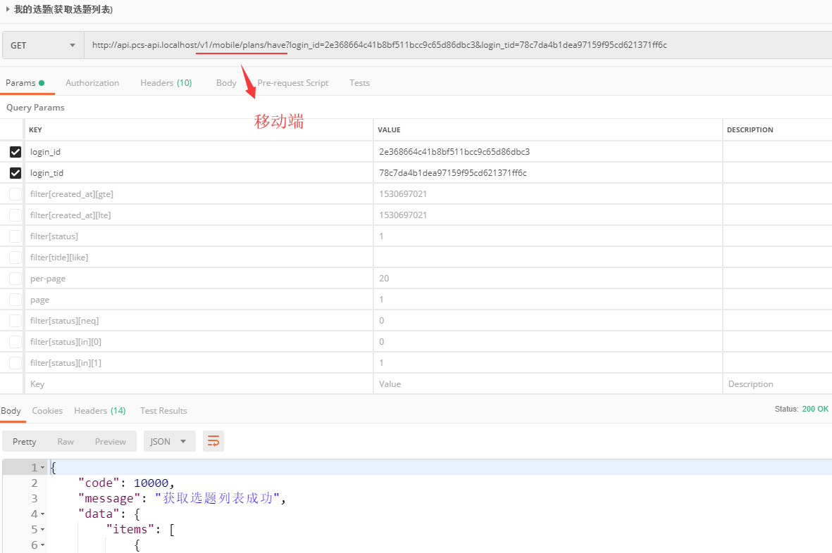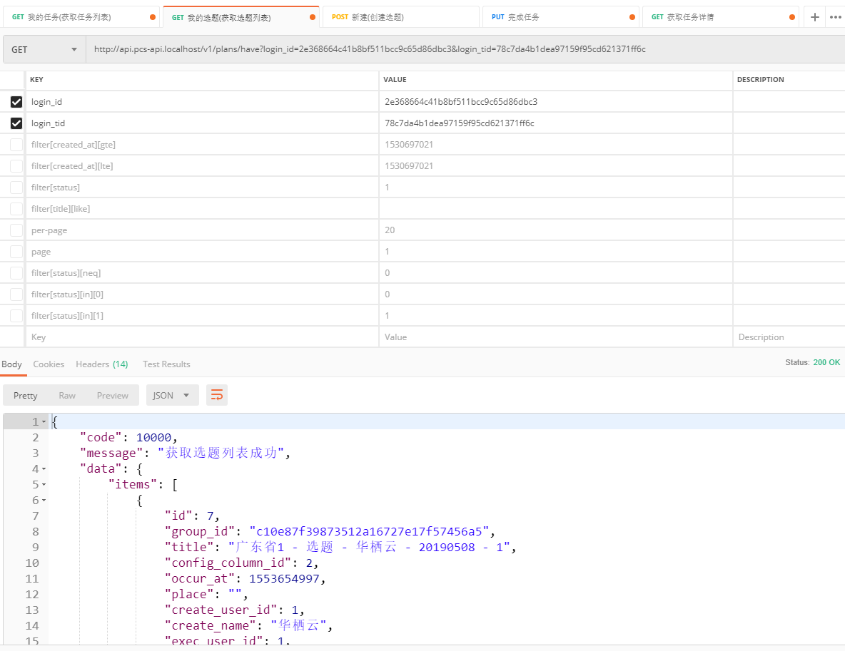 2、接口:我的选题(获取选题列表),在 Postman 中的响应结构,如图2