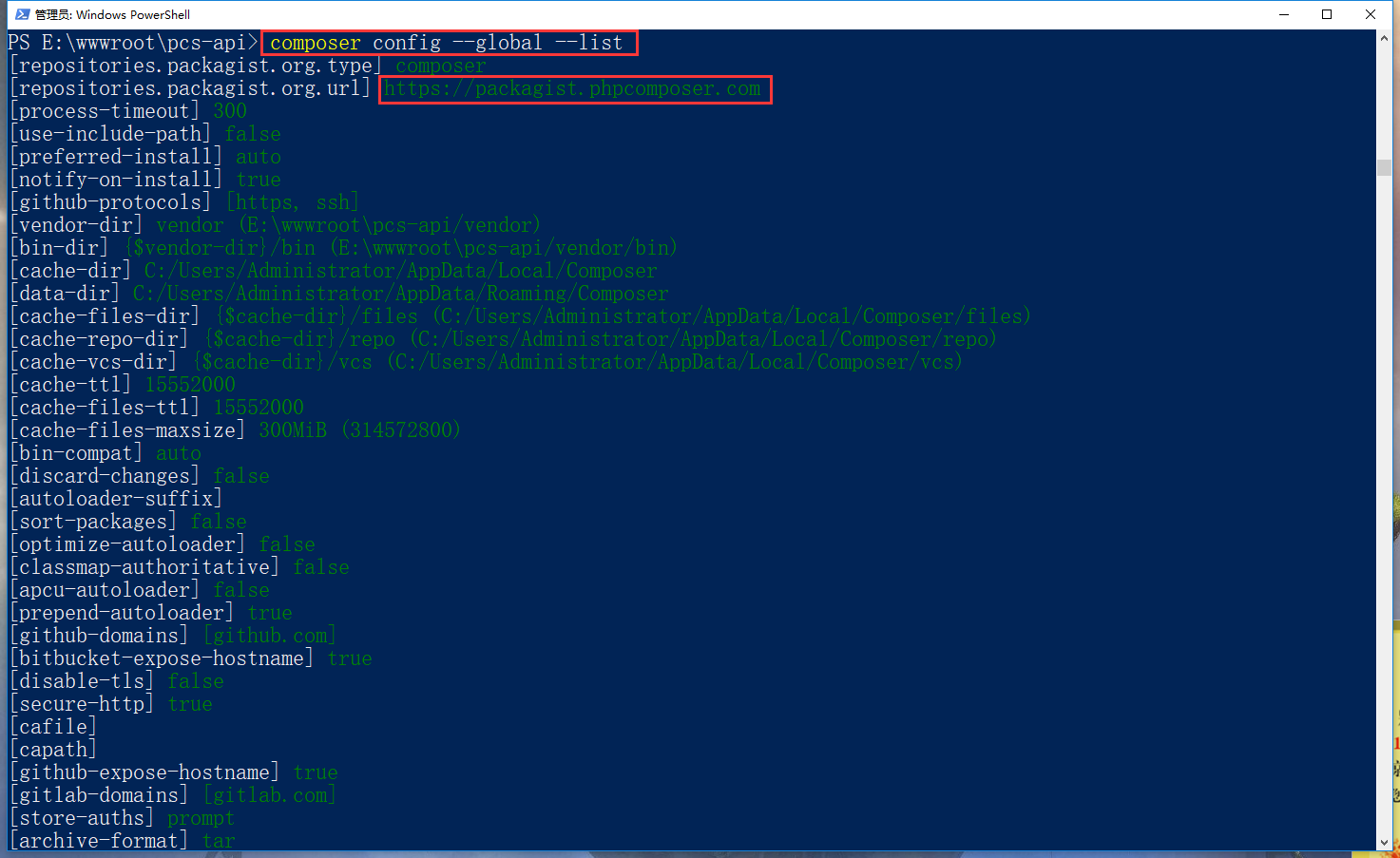 PS E:\wwwroot\pcs-api> composer config --global --list