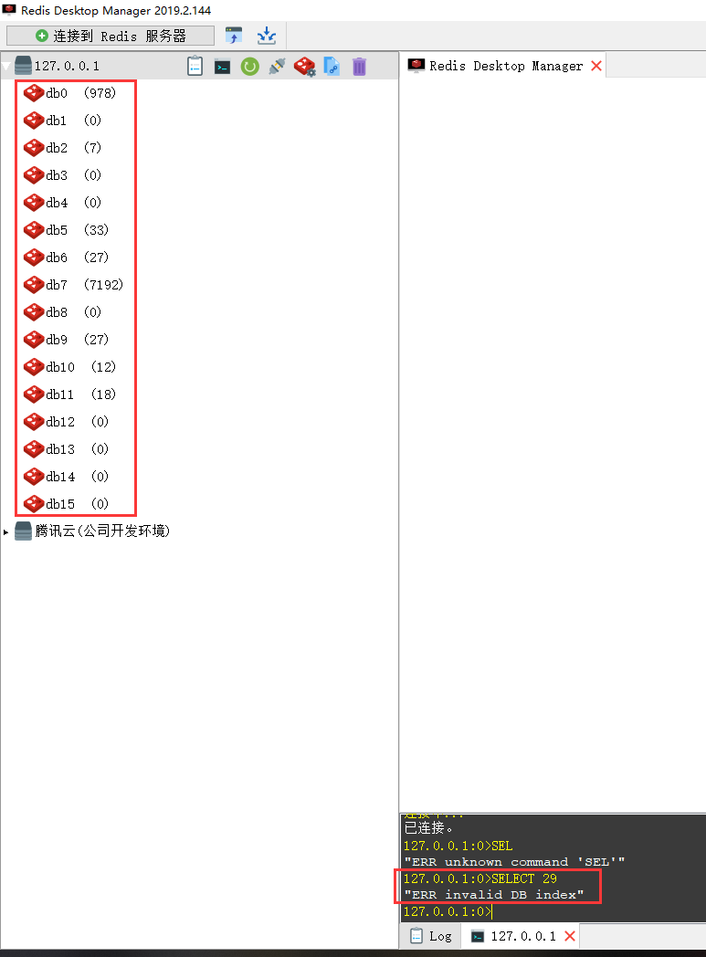 2、分析发现,是在执行命令:SELECT 29 时,切换到相应数据库:29 时报错的,一个 redis 实例默认有 16 个数据库,从 0 – 15,超出这个范围就会报 ERR invalid DB index,如图1