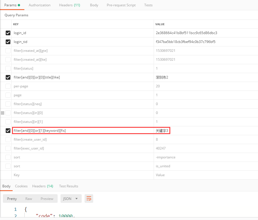 filter[and][0][or][0][title][like]:深圳市2 filter[status][neq]:0 filter[and][0][or][1][keyword][fis]:关键字3