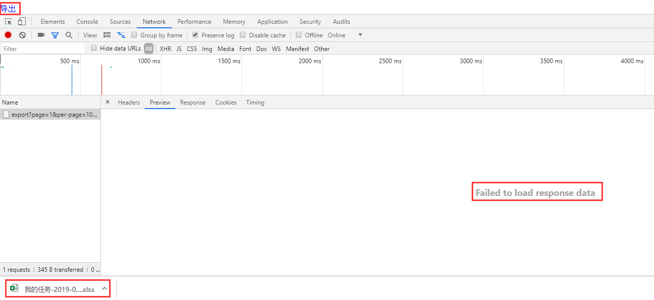 16、最终决定基于纯粹的链接来实现,使用 download 属性,此属性指示浏览器下载 URL 而不是导航到它,因此将提示用户将其保存为本地文件。,点击 “导出” 按钮,下载名为:我的任务-2019-09-26-10-44-40.xlsx 的文件,如图12
