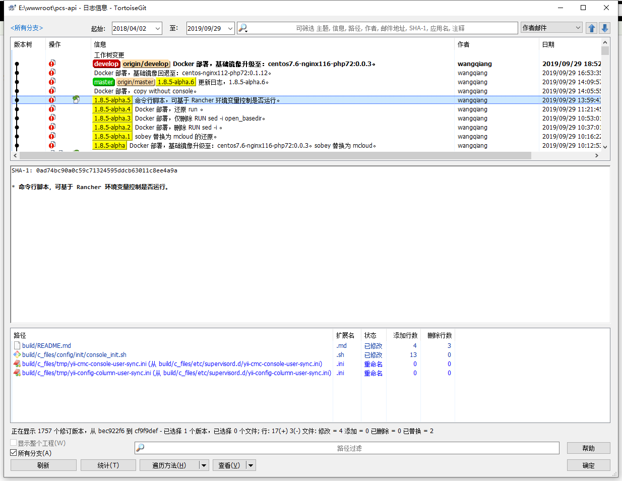 3、回退至上一版本,未报错,查看 Git 日志,分析差异,如图2