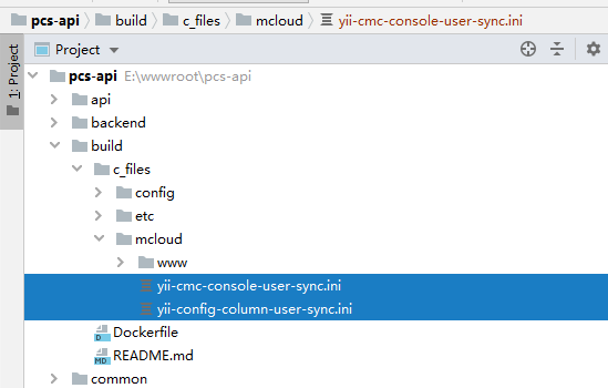 6、将 /build/c_files/tmp/yii-cmc-console-user-sync.ini、/build/c_files/tmp/yii-config-column-user-sync.ini 剪切至 /build/c_files/mcloud/yii-cmc-console-user-sync.ini、/build/c_files/mcloud/yii-config-column-user-sync.ini,如图5
