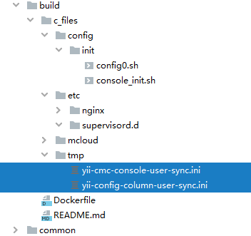 1、将 /build/c_files/etc/supervisord.d/yii-cmc-console-user-sync.ini、/build/c_files/etc/supervisord.d/yii-config-column-user-sync.ini 剪切至 /build/c_files/tmp/yii-cmc-console-user-sync.ini、/build/c_files/tmp/yii-config-column-user-sync.ini,如图1