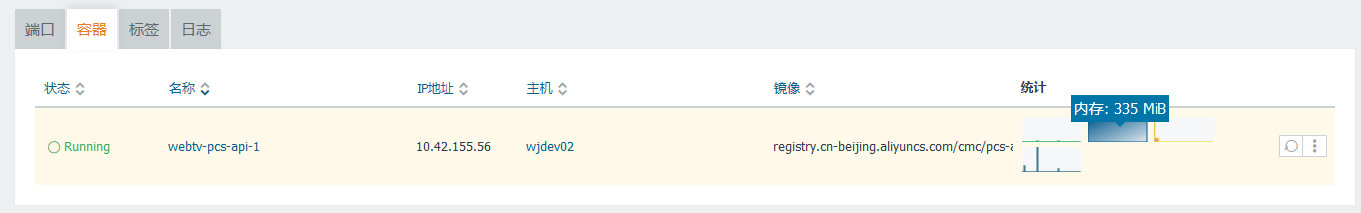 11、还原第 8 步骤所做的修改,升级至开发环境,Docker 容器的 CPU:0.04%,内存:335MB,内存增加了 (335MB – 168MB) = 167MB 左右,如图5