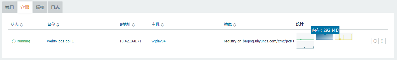 20、升级至开发环境,Docker 容器的 CPU:0.04%,内存:292MB,内存增加了 (292MB – 270MB) = 20MB 左右,未符合预期,如图7